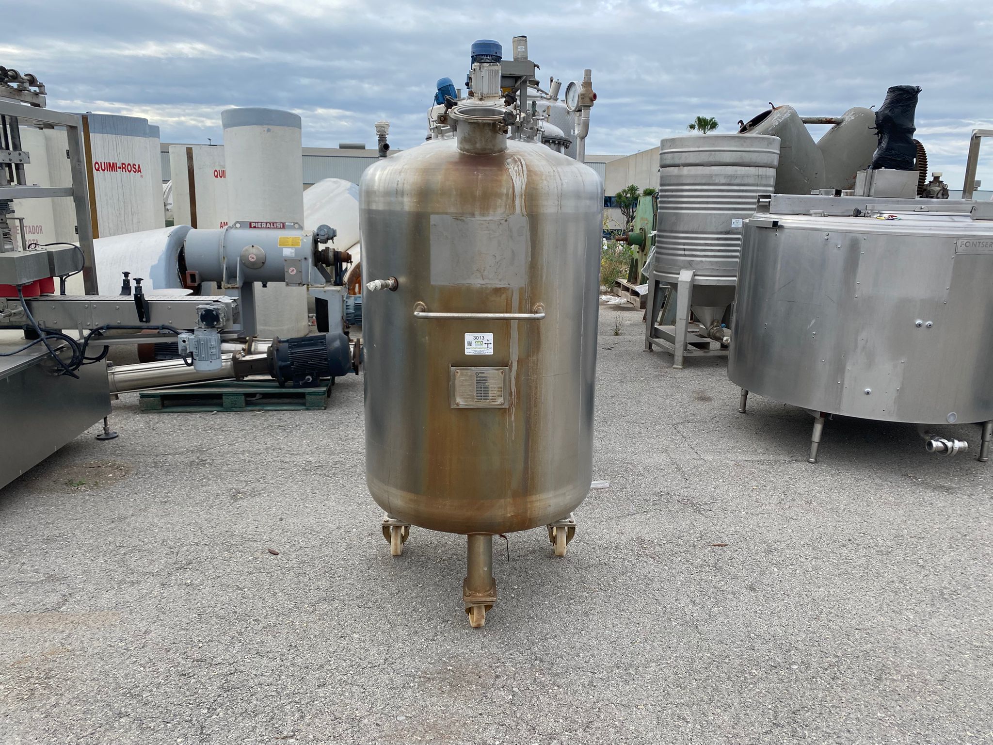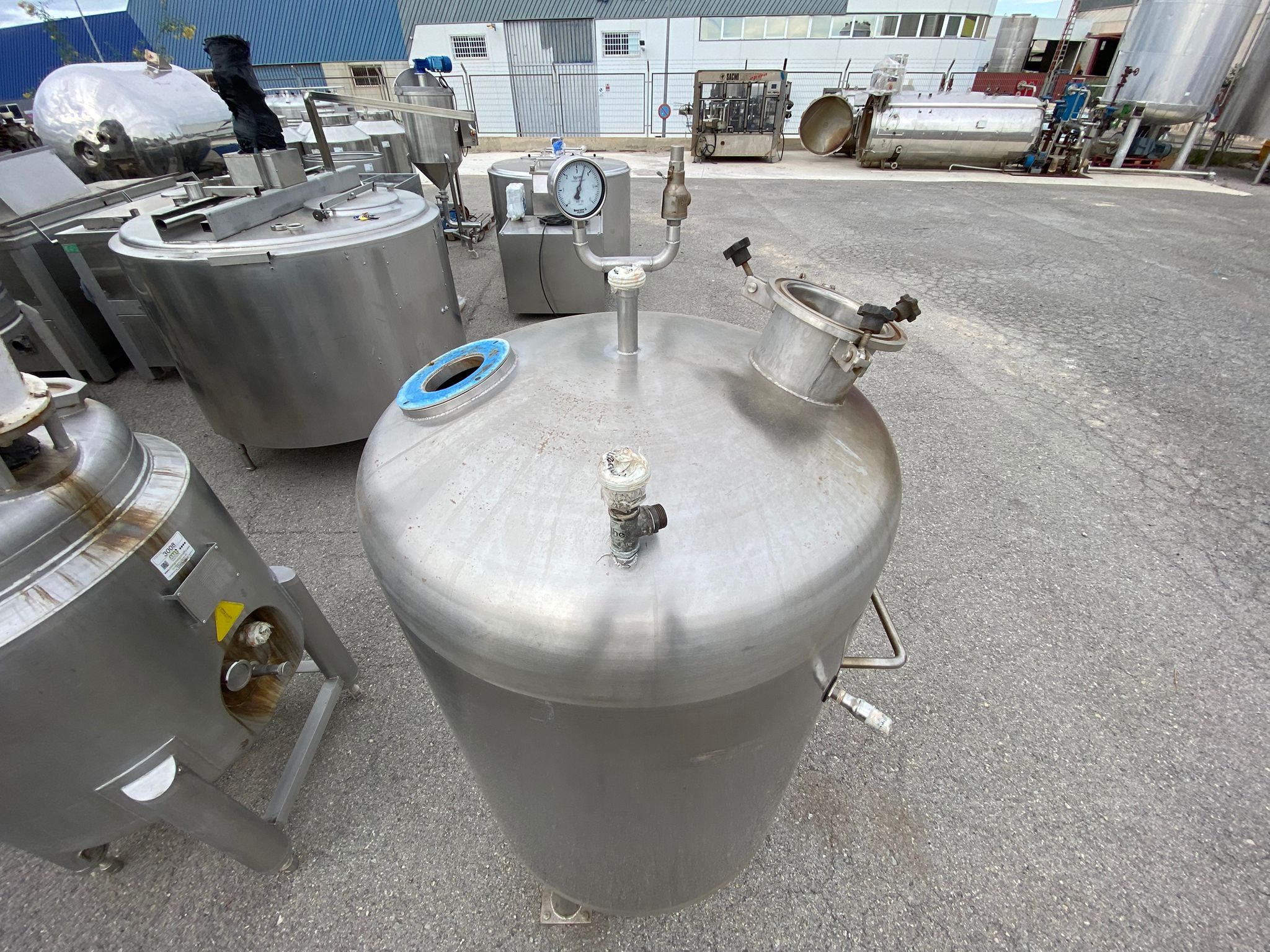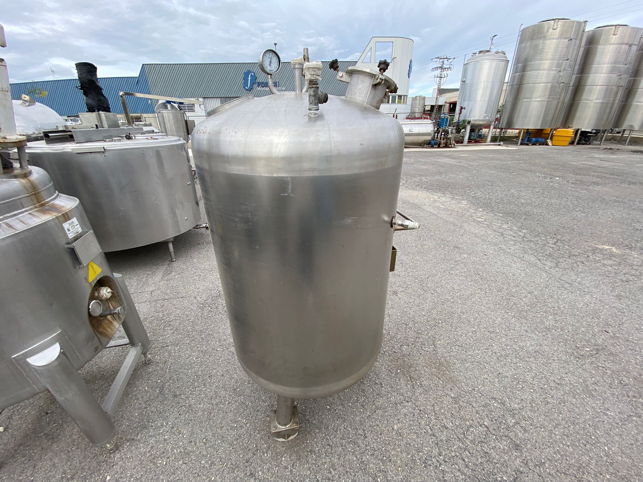 Depósito atmosférico para presión con fondos kloper, salida inferior y entradas superiores con medidor de presión.