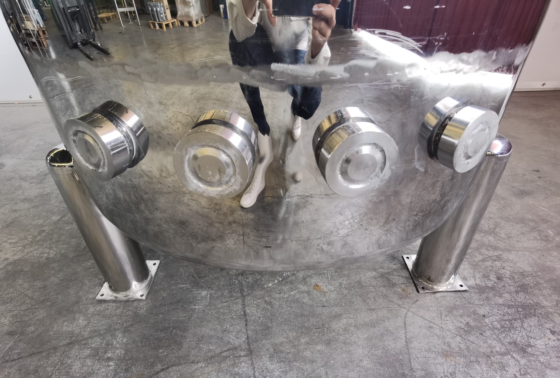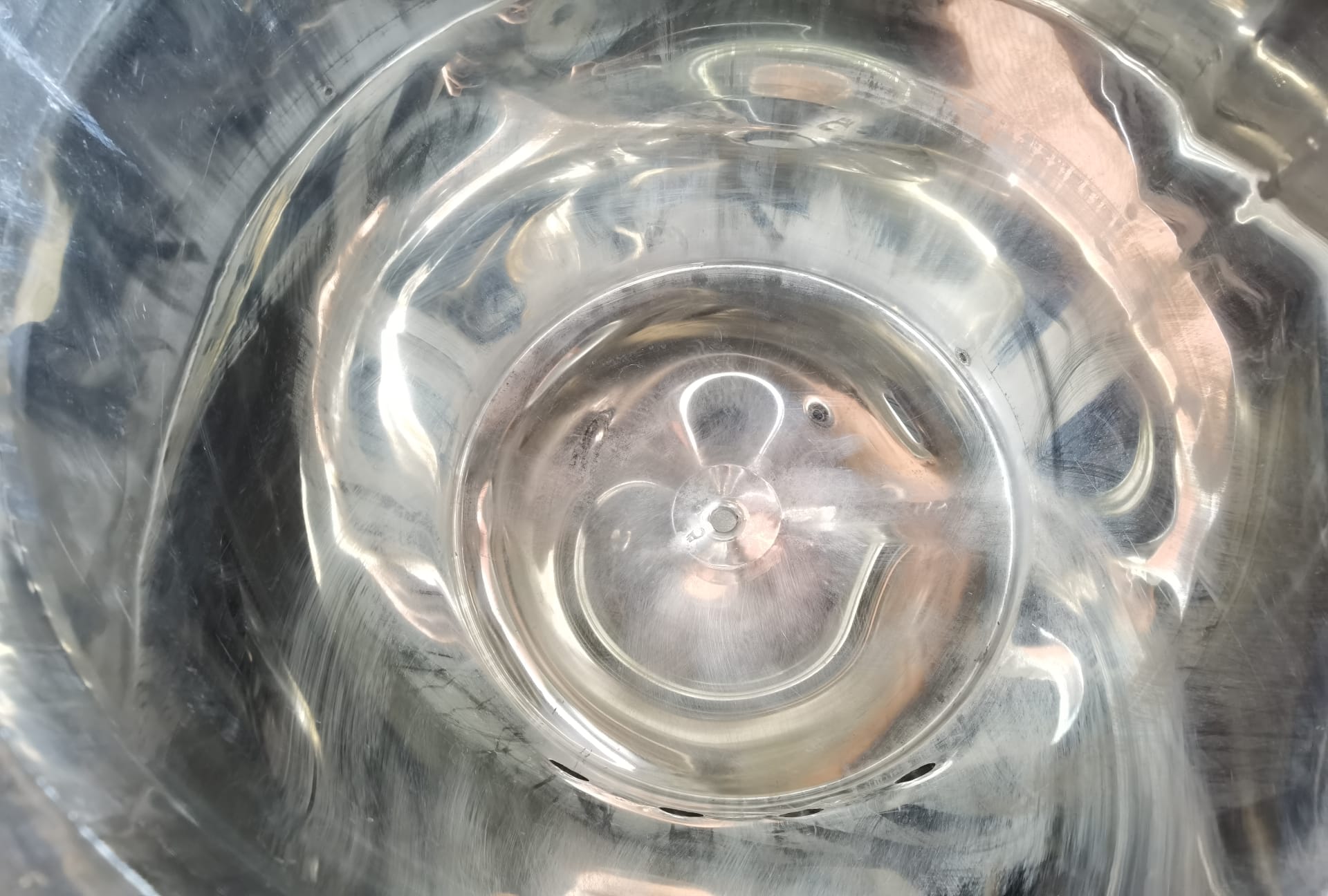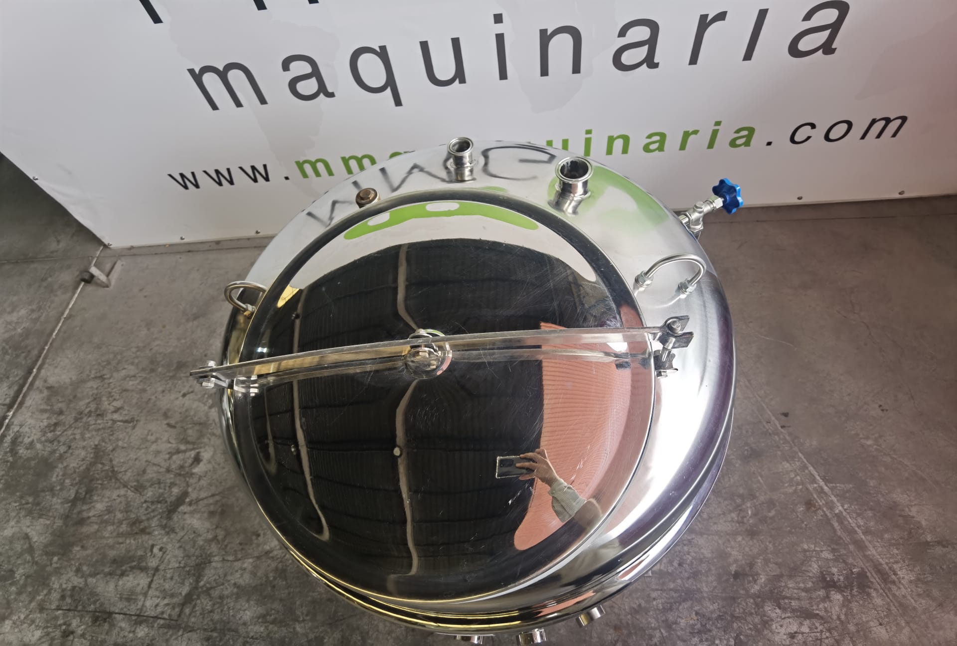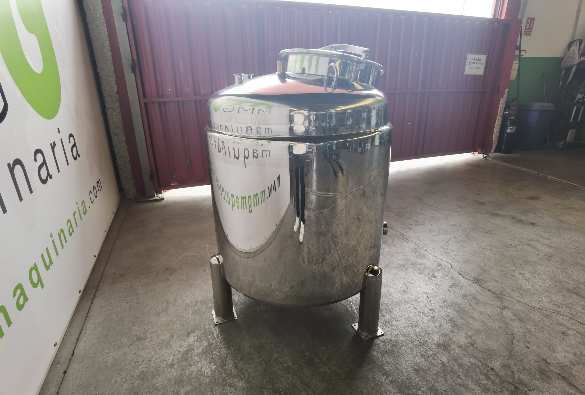 Depósito de doble fondo para recircular agua de 600 litros de capacidad en acero inoxidable ideal para productos líquidos que necesiten ser sometidos a cambios de temperatura, consta de un medidor de volumen y un fondo semicónico que favorece al vaciado total.