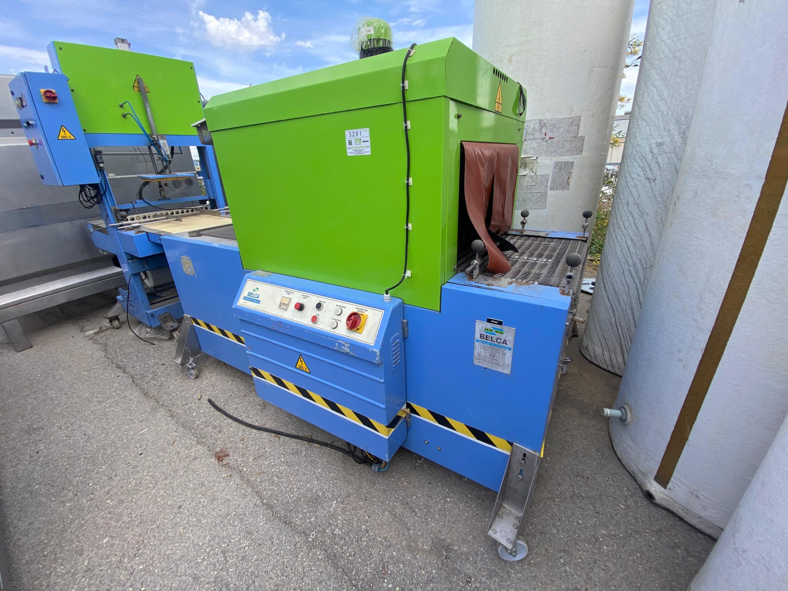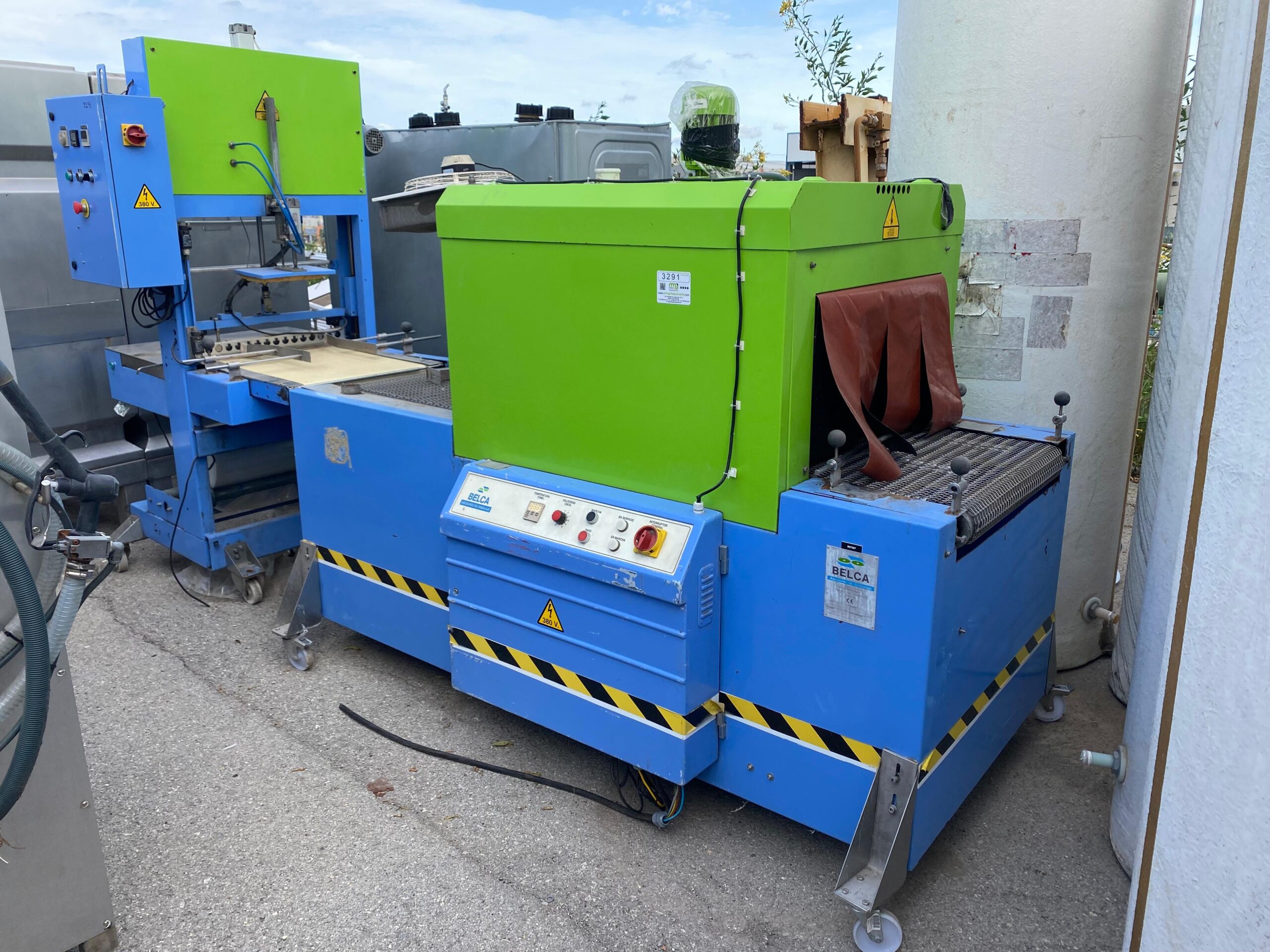 Túnel de retractilado BELCA con su enfajadora frontal BELCA ideal para el retractilado de paquetes de envases y recipientes mediante film no fundente.